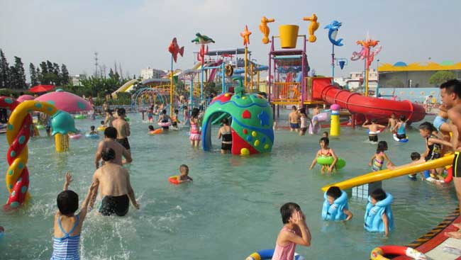 而水上游樂池的用途主要是供人們以戲水、娛樂、培養其親水意識的場所,所以水上游樂池的水深設置是從淺水端向深水端延伸,深度一般比泳池的低,坡度不超過2%。如此布置的深度還有一個原因,就是在水深區域如設計有成人的各種水滑道,由于設施對游樂者更具挑戰性和刺激性,當然也具有更大的危險性。在深水端的水一方面能夠對滑道上的人起到保護的用作;另一方面讓這些設施遠離人多的淺水區,以防止發生安全事故。