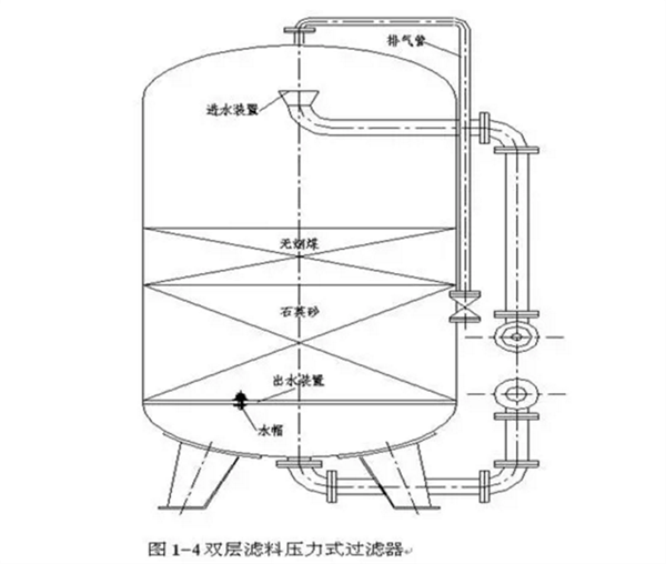 2、按水流在過濾器內的水流狀態可分為“重力流過濾器”和“壓力流過濾器”。
