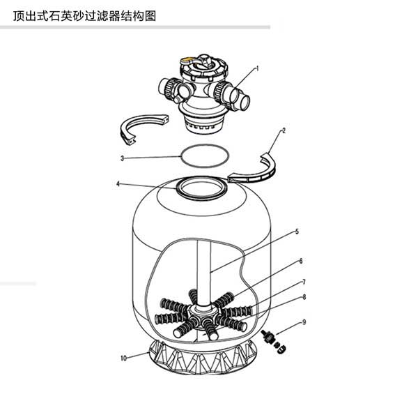 壓力過濾器:將過濾介質裝入一個封閉的耐壓容器內,把待過濾掉池水施以外力,以達到提高池水流過過濾介質的速度,通過過濾介質攔截水中的雜質,使其濾后出水達到標準的過濾設備。