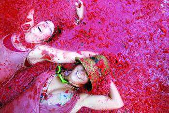 美國佛羅里達州著名的番茄浴,長期沐浴能讓人充分吸收番茄的營養(yǎng)成份。不過我想沐浴的時候會不會忍不住喝口番茄汁呢。