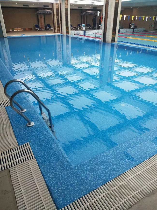 1、水質平衡:當池水在水質平衡指數低于-0.3以下式,因為池水的總硬度低于200ppm,池水對鈣離子充滿饑餓感,以致于溶解瓷磚縫中的水泥,來補充鈣離子濃度,以達到水質平衡,因此,瓷磚縫會下沉,導致瓷磚相對浮出,泳者因腳趾踢到瓷磚角而受傷。