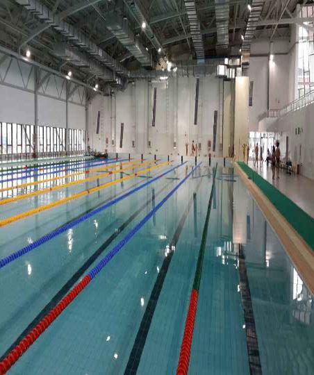 過濾完成后進行二次曝氣融氧,完成后一部分水進行加熱,加熱完成后回到主水管,然后進行PH值調節,消毒系統進行消毒后,通過主水管自流回游泳池,完成一系列的循環、曝氣融氧、過濾、加熱、消毒等程序。