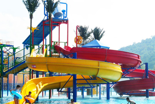 水寨既實用又簡約,此水上游樂設備也可進行特色包裝,占地面積達700多平方米,高12米,4道滑梯,1個中型翻桶。