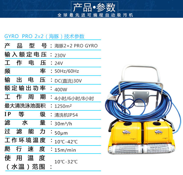 海豚2x2游泳池吸污機(jī)是以色列軍工轉(zhuǎn)民用產(chǎn)品代表,配電線防纏繞設(shè)備,配陀螺儀,標(biāo)準(zhǔn)直線行走,可爬墻清洗池壁及水線,近幾屆奧運(yùn)會(huì)指定使用產(chǎn)品,全球市場(chǎng)份額40%。